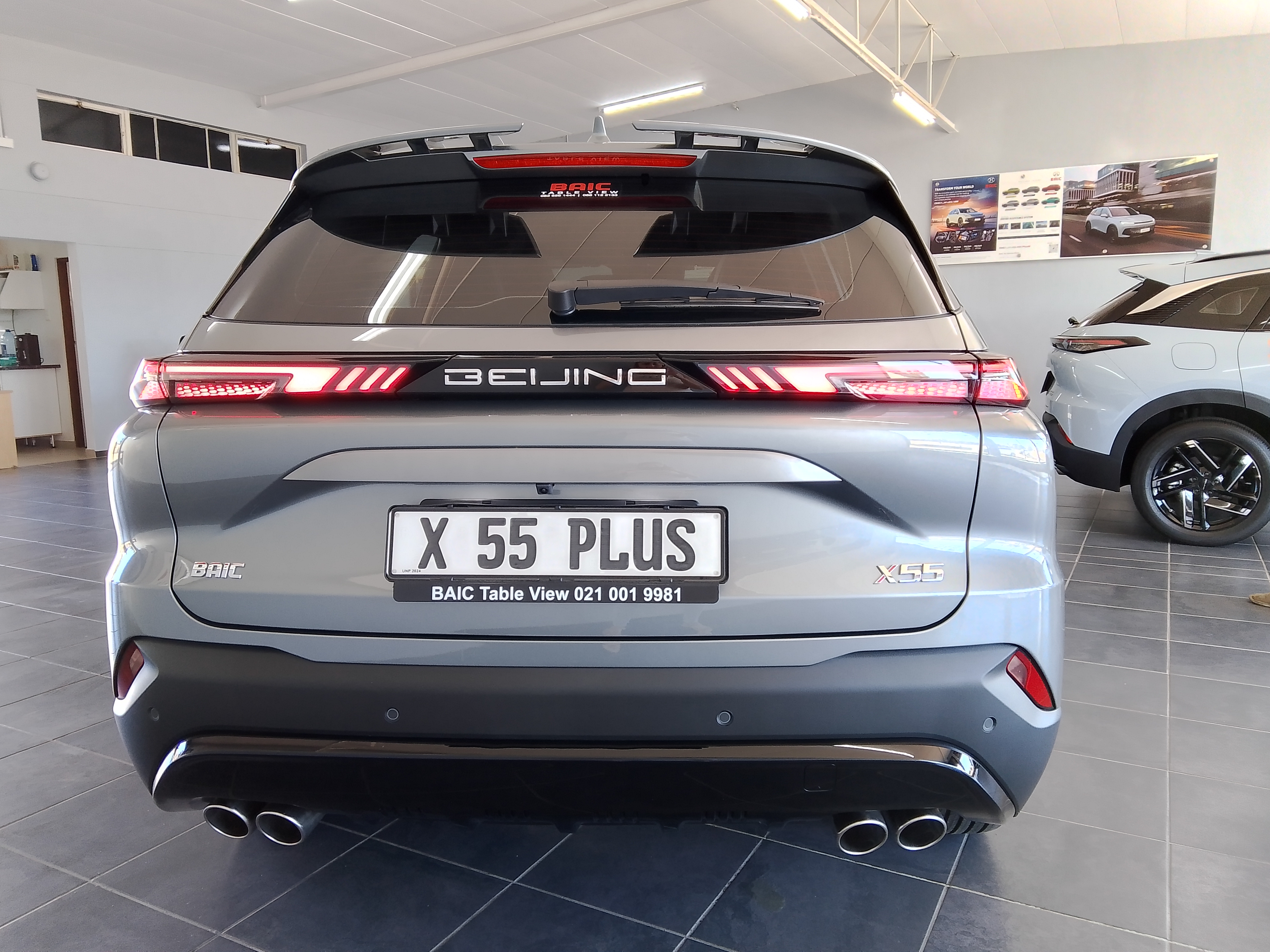Beijing X55 PLUS Premium Features: 360? Panoramic Imaging, Dual Zone Climate Control, Adaptive Cruise Control, Forward Collision Warning, Wireless Charging and Type-C Charging Port, Voice Control, Dual Quad Exhaust, Lane Departure Warning, Blind Spot Detection, Black Premium Leather Seats, Front and Rear Radar (PDC), Autonomous Emergency Braking CarPlay