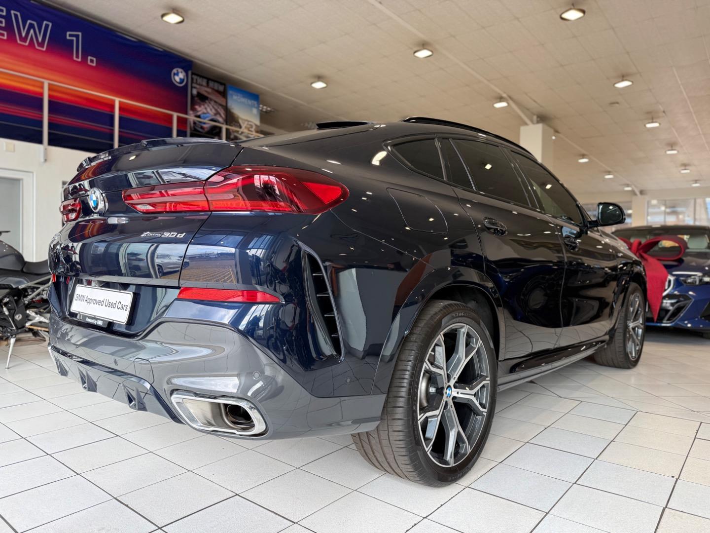 Experience the fusion of power and elegance with the 2023 BMW X6 xDrive30d M Sport. This Carbon Black beauty is equipped with a robust 3.0-liter turbo diesel engine, delivering a combined power output of 219 kW and a substantial 670 Nm of torque. With a 0-100 km/h acceleration in just 6.1 seconds and a top speed of 233 km/h, the X6 offers an exhilarating drive. The vehicle's average fuel consumption of 7.8 l/100km and a generous fuel range of 1,026 km make it perfect for both city cruising and long-distance journeys. Designed for the discerning driver, the X6 xDrive30d M Sport pairs its dynamic performance with luxury and comfort. The front-engine layout ensures optimal weight distribution, enhancing handling precision. Inside, you'll find a refined cabin that matches its sporty exterior. The vehicle comes with a comprehensive warranty covering up to 100,000 km, providing peace of mind as you explore new roads. Embrace the sophistication and performance of the BMW X6 xDrive30d M Sport, where every drive is an unforgettable experience.