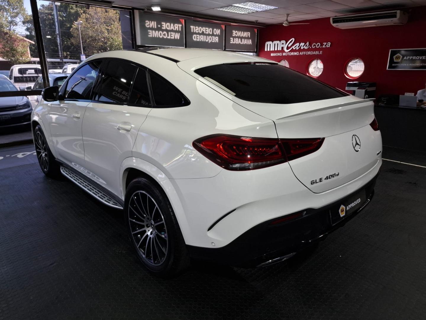 Drive in commanding style with this stunning Mercedes‑Benz GLE 400d Coupé — a perfect fusion of luxury, performance, and bold design. Powered by a refined yet powerful 400d engine with 4MATIC all-wheel drive, this 2021 model delivers effortless performance and supreme comfort in every journey. It comes with a full service history at agents and the balance of the service contract valid until 28 March 2026, giving you complete peace of mind. Fitted with an aggressive Night Package (Night Kit), it boasts sleek black exterior accents that enhance its sporty, head-turning presence. Combining coupe styling with SUV practicality, premium interior finishes, advanced technology, and legendary Mercedes-Benz engineering, this GLE 400d is the ultimate statement vehicle for those who demand sophistication and power in one exceptional package. Drive Home Your Dream Ride Today! Flexible Financing Options: No deposit required! Get behind the wheel with easy, in-house finance tailored to your needs. Trade-Ins Welcome: Upgrade effortlessly – we accept vehicles from 2019 onwards to help offset your new purchase. Important Note on Finance: Using external financing? A small 5% surcharge applies – ask us why our in-house options might save you more! Peace of Mind Guaranteed: Every vehicle comes with a valid AA Roadworthy Certificate, ensuring safety and reliability from day one. Unbeatable Selection: Explore our wide range of competitively priced cars, panel van’s and SUVs –